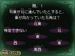 問.1:列車が北に進んでいたとすると、車が向かっていた方角は?